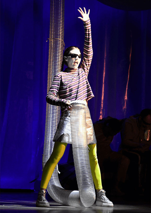 *в звуковому оформленні вистави є звуки далеких вибухів.