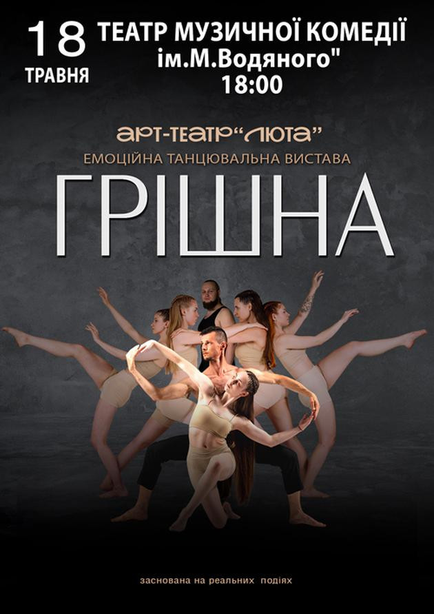 Танцювальна вистава "Грішна" від Арт-Театру "Люта" - це стильна, сучасна і приголомшливо відверта вистава про помилки та каяття, про торги із власною совістю, боротьбу з людським осудом та тонку межу між безчестям та власним щастям. Про грішну любов і одвічне питання "чи насправді краще двоє щасливих ніж троє нещасних?".