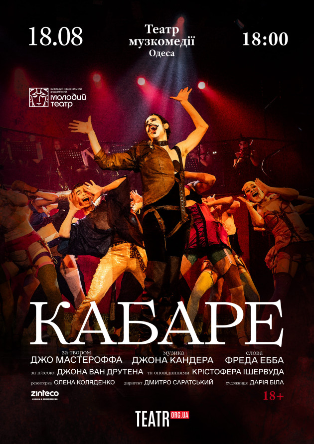 Київський академічний Молодий театр презентує в Одесі найбільш резонансну виставу останніх років. Офіційна ліцензійна постановка легендарного мюзиклу «КАБАРЕ», що стала справжньою театральною сенсацією у столиці та регулярно збирає аншлаги, вперше буде показана на сцені театру музкомедії.