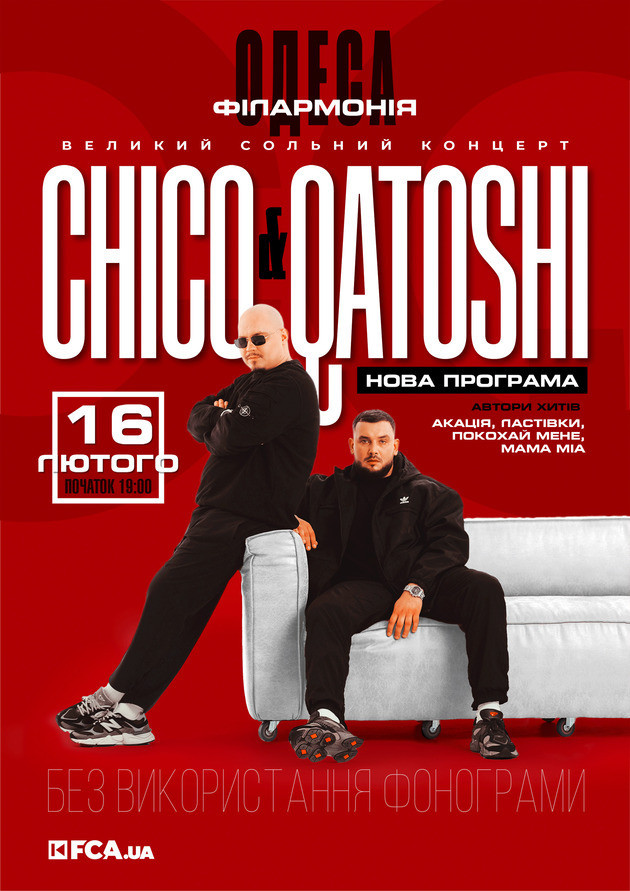 Вже зовсім скоро Chico & Qatoshi дають свій сольний концерт у вашом місті, де разом з вами заспівають улюблені хіти та нові пісні.