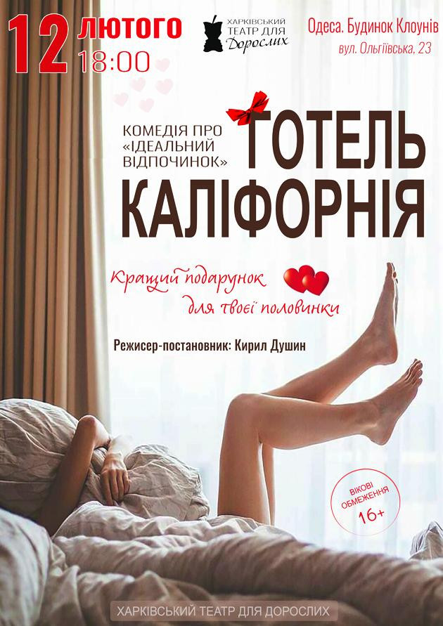 Подаруйте собі та своїм близьким вечір в шикарному номері готелю "Каліфорнія" та зустріч з неперевершеним ХАРКІВСЬКИМ ТЕАТРОМ ДЛЯ ДОРОСЛИХ!