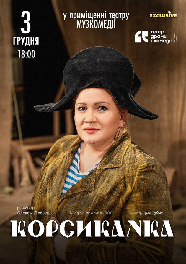 В Театрі музкомедії ім. М. Водяного відбудеться вистава “Корсиканка” в Одесі від Театру драми та комедії на лівому березі Дніпра. Неймовірно успішна постановка з довгим сценічним життям розповідає нам про Наполеона, який опинився у засланні. Навколо море, за вікном острів Святої Єлени, позаду амбітні звершення і поразка, а попереду - лише старість. Все, що залишилося від колишнього блиску - старий мундир на городньому опудалі.